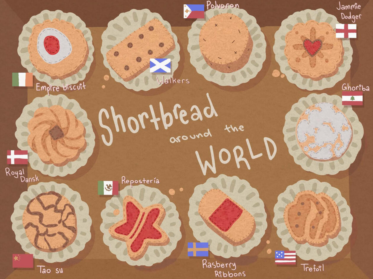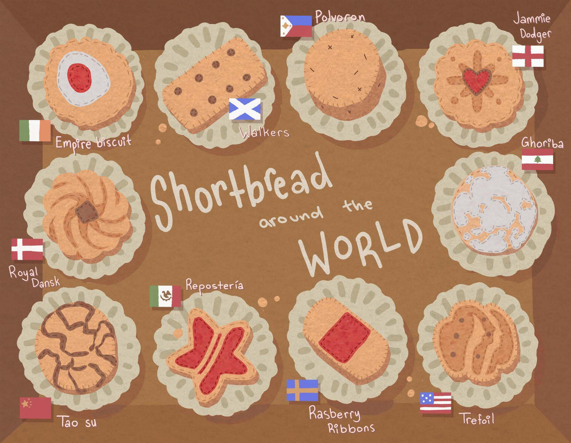 This illustration shows ten unique shortbread types for a cookie sampler.